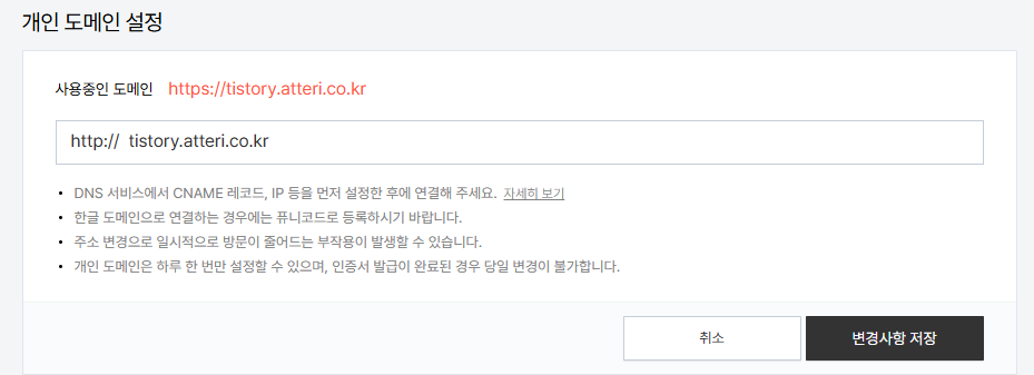 도메인 설정하니 잘 들어가지네