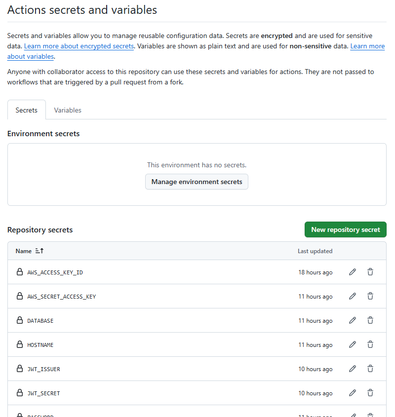 jwt시크릿이나 디비정보등을 가리고 배포하기 편하게 github action을 등록하려한다.
